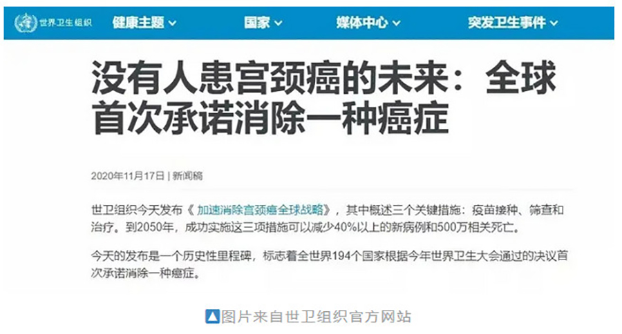 2020年11月17日,世衛組織發(fā)布《加速消除宮頸癌全球戰略》這标志著(zhe)全世界194個國家首次承諾消除一種癌症!